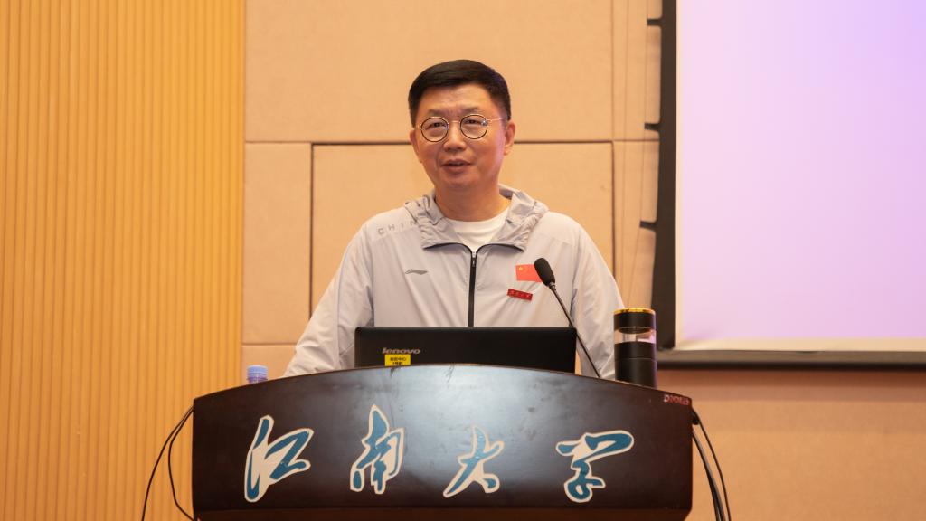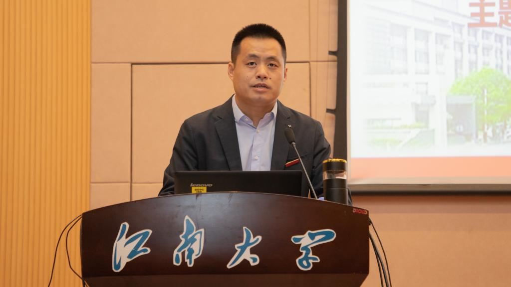 之后,蓝军会长向与会师生简要介绍了中国民族贸易促进会,并结合社会组织在新兴、未来产业中的定位,借助案例阐释了其成为新质生产力“蓄能器”的五个维度:信心、创新、资源、合作和发展。其中,在阐释信心维度时,蓝军会长强调要从中国共产党的坚强领导、中国经济的超强韧性、高水平对外开放与民营企业迎来发展“春天”等四个方面进行理解。结合中国民贸的使命目标,他讲述了受习近平总书记多次接见的亲身事迹,解读了中国经济数据背后的韧性、活力与潜力,分享了社会组织视角培育壮大新质生产力的见解。讲到发展维度时,蓝军指出新质生产力具有“高质量发展”特征,介绍了中国民贸携手江南大学研制发布的系列标准,强调了“高标准引领、高质量发展”与“助推生产性服务业高质量发展”等重要内容。最后,蓝军表达了对中国民贸与江南大学合作共建、一乡一品产业、科研成果转化、青年人才培养以及创业项目支持等方面的合作期待,勉励江南学子成为新质生产力的未来之星。
