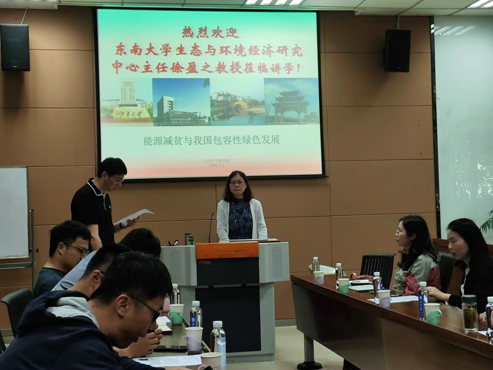 5月7日下午,“商学大讲堂”系列学术讲座第241讲在至尊z9999全讯118报告厅举行。东南大学经济管理学院特聘教授、生态与环境经济研究中心主任徐盈之应邀作题为“能源减贫与我国包容性绿色发展”的学术讲座。本次讲座由国际经济与贸易系主任戴越副教授主持,至尊z9999全讯教师和应用经济学、金融学等专业研究生近50人参加。