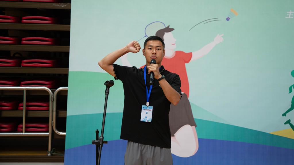 开幕式上,裁判员代表、运动员代表依次宣誓,表明一定严格遵守规则,发扬体育精神。开幕式最后,本次比赛裁判长王薇宣布江南大学2024校园羽毛球赛正式开始。
