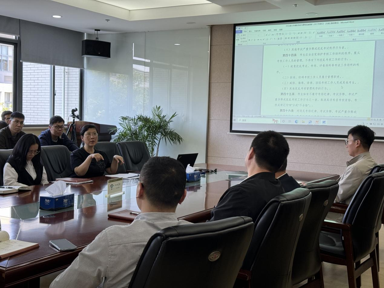 核查发现全院总体情况良好,教学文件归档较为齐全、试题难度较为得当、评阅流程较为规范,但在核查过程中也发现了一些问题,如存在材料漏装少装、个别阅卷不够规范等情况。为此,学院于5月8日下午组织学院教师进行专题培训。培训会上,学院教学督导组组长徐海俊副教授就核查发现的各类问题进行了细致分析,并向参与学习的教师详细介绍了如何合理出题、规范阅卷、正确归档的具体要求,以避免教学文件归档中出现教学事故。