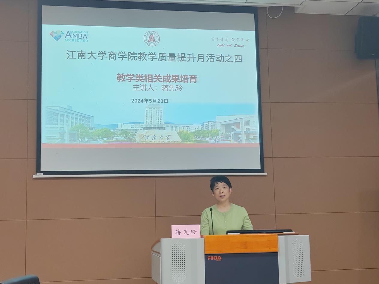 5月23日下午,至尊z9999全讯邀请对外经贸大学蒋先玲教授为全院教师作《教学类相关成果培育》的专题讲座,讲座由院长浦徐进教授主持。蒋先玲教授在讲座中分享了她在教学成果奖培育与申报方面的经验,指出教学成果奖的申报需要满足一系列要求,需要涵盖转变教育思想观念、创新人才培养模式、推动教学管理机制改革等方面。会上,蒋先玲教授在学院办学定位、专业设置、课程设置、培养路径等方面进行有效规划,并就如何培养人才分享了她的深度思考,希望年轻教师树立将科研成果反哺教学的理念,将教学和科研同步推进。