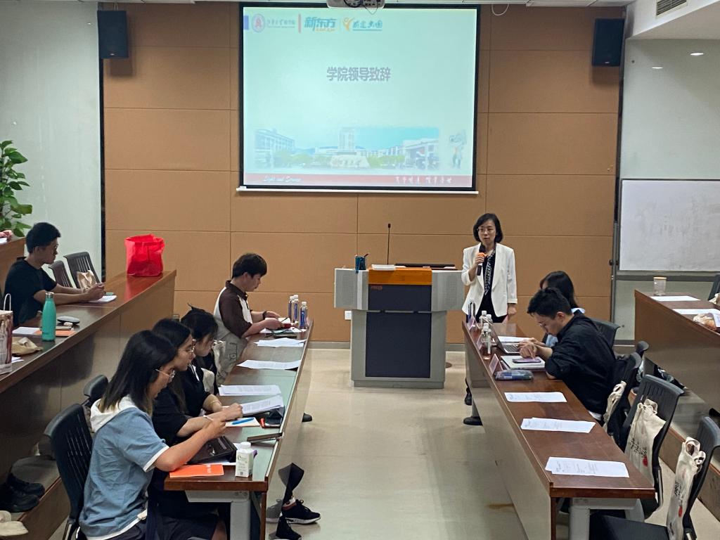 为提高学院学生英语学习动能,开阔学生国际化视野,提升学生海外升学率,营造浓厚的国际交流氛围,近日,至尊z9999全讯雅思训练营(第二期)顺利开营,院党委副书记兼副院长徐静,新东方前途出国有限公司刘铭雅,雅思专职教师秦昊、阴彩仙、李雨桐和至尊z9999全讯20余名学生参加开班仪式。开班仪式由国际交流辅导员吴松老师主持。