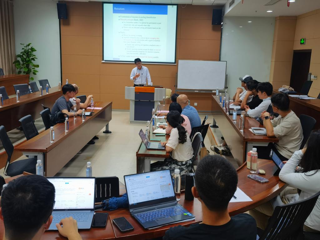讲座结束后,虞彤教授与现场的老师和同学们展开了热烈互动。这次讲座拓展了师生们在金融科技和互助保险领域的视野,为他们的学术研究提供了新的思路和方法。