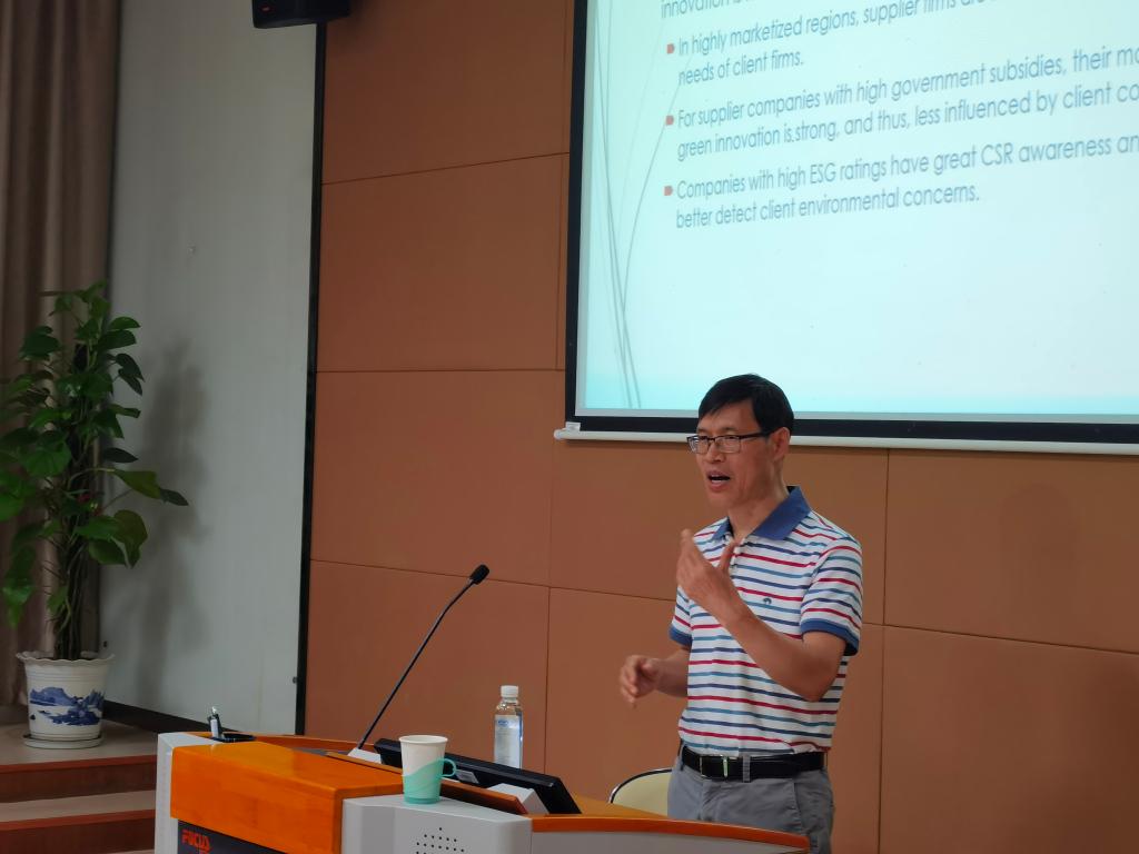 最后,安教授分享该研究的主要结论。随着客户公司所在地环境处罚总数的增加,供应商公司提交的绿色专利申请数量也会随之增加,而客户公司的环境监管压力对供应商公司提交的绿色专利申请数量有更大的影响,并且当供应企业位于市场化程度较高、ESG评级较高的地区时,环境监管压力对供应企业绿色创新的溢出效应将会更为明显。