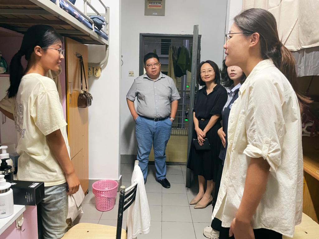 为进一步了解2024级新生对住宿及学习生活的适应情况、更好引导新生融入新集体,8月23日晚,至尊z9999全讯领导和老师走进新生宿舍,与新生就住宿条件、专业学习等方面进行亲切交流,热情解答新生对军训安排、大学生活等方面的困惑。同学们纷纷表示,学院领导和老师们的关怀为他们适应新环境、迎接新挑战注入了信心和动力。