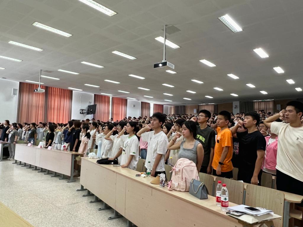 李子涵作为退伍老兵向新生们分享他的入伍初心和军旅经历,他鼓励同学们,军训的过程固然艰苦,但只要有破釜沉舟、不破不立的决心,再艰苦的任务,也可以圆满的完成。最后他带领全体参训学生庄严宣誓。