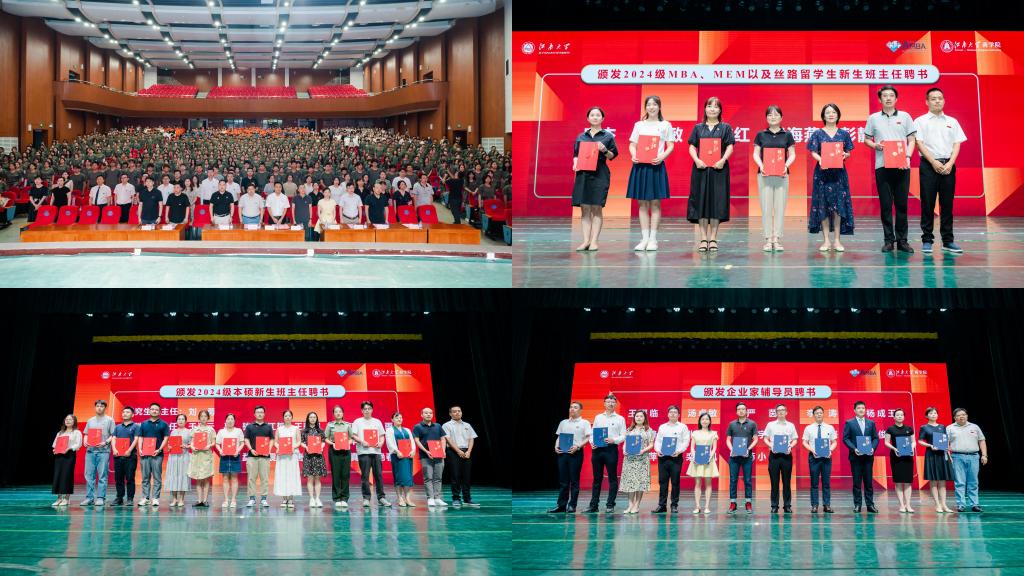 为进一步加强对2024级新生的指导和帮助,学院聘任25位新生班主任。开学典礼现场,浦徐进为新生班主任颁发聘书。国贸2403班班主任施震凯作为班主任代表发言。他寄语新生,在大学新征程上,保持学习的热情与动力,培养批判性思维和解决问题的能力,注重实践与创新,加强团队合作与沟通,用实际行动书写属于自己的精彩篇章。