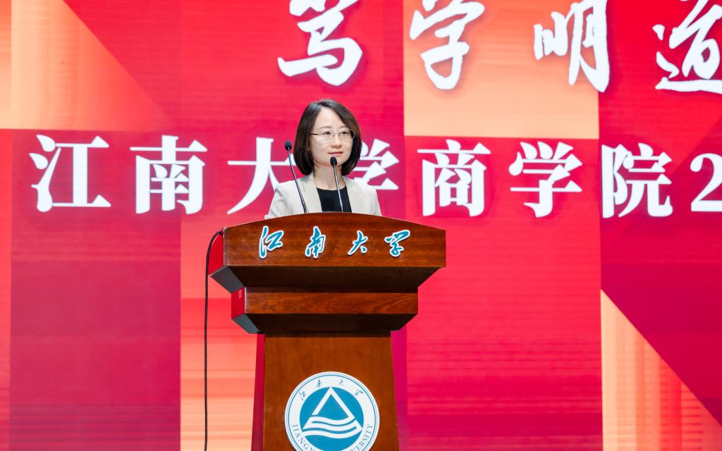 学院本科生新生代表、国际经济与贸易2402班孟美成祯与同学们分享求学感悟,表示在未来四年学习中,将厚植人文情怀,积淀江南底蕴;满怀理想信念,练就过硬本领;努力奋勇争先,展现青春活力。