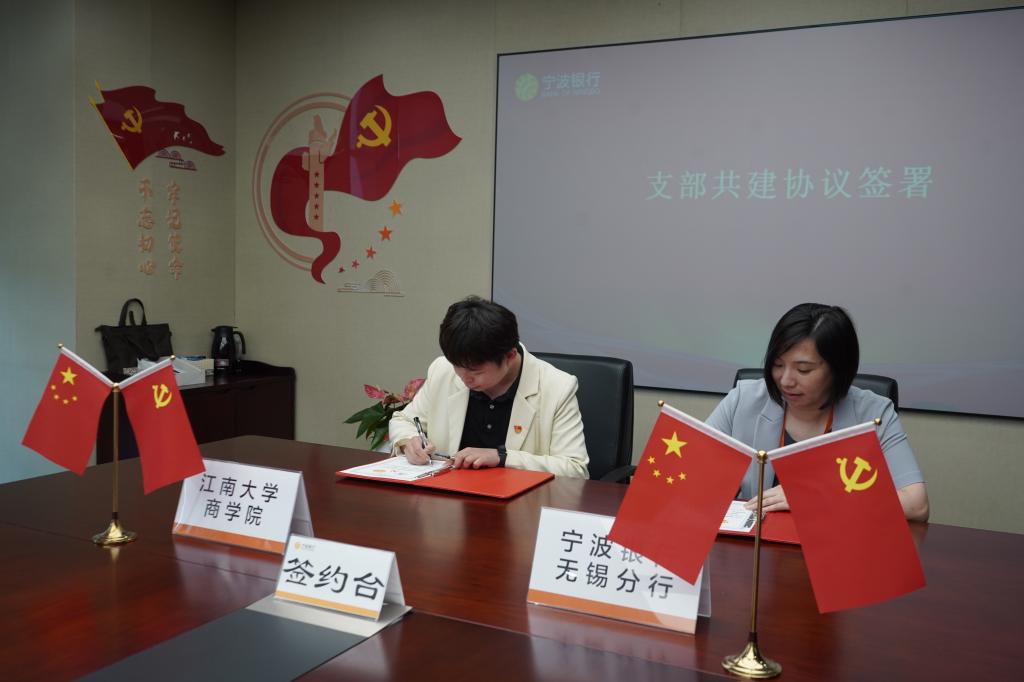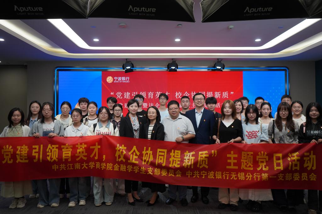 至尊z9999全讯一直高度重视学生党员发展与高质量就业工作,本次与宁波银行无锡分行第一党支部开展支部共建联学主题党日活动,是进一步落实学院党委“五个一”党建工程的生动实践,将通过此次共建,建立健全校企双方互帮互助、共建共赢的长效工作机制,不断提高双方的基层党建工作水平,形成结对共建强大合力。